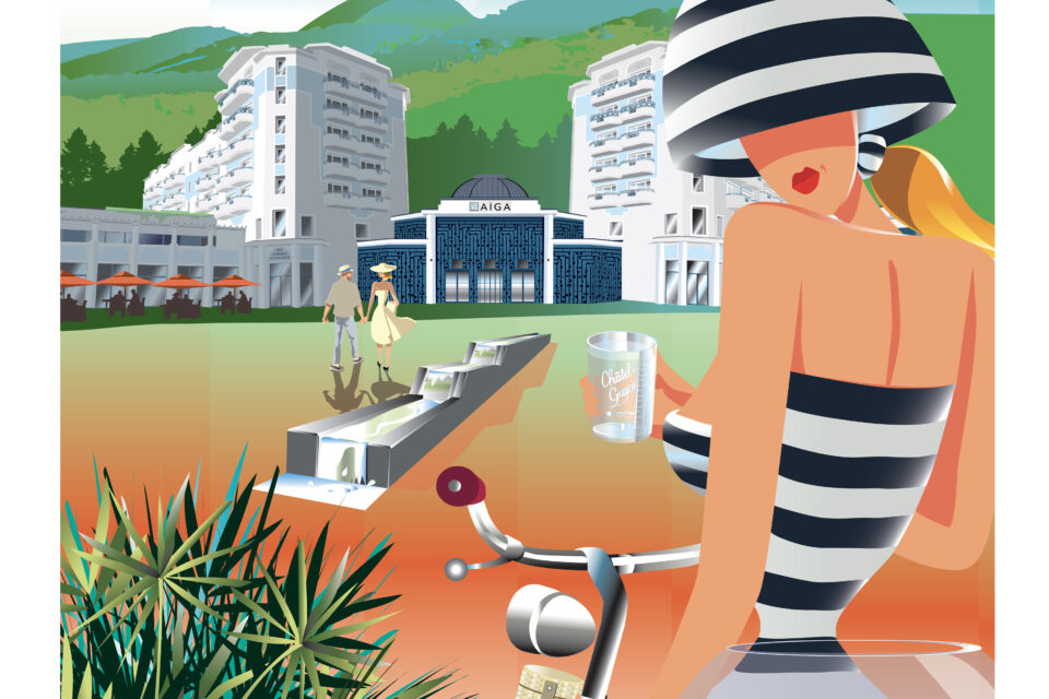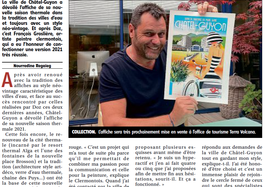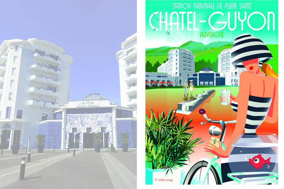 Une affiche néo-vintage pour une Ville Thermale dynamique !Comme la plupart des stations thermales de France, Châtel-Guyon se dote d’un Casino et d’un Théâtre construit en 1901 et agrandi en 1908.